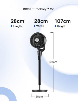 Dreo 23dB ventilateur sur pied silencieux, portée de 24M, volume d’air 1200m³/h, turbo circulateur, hauteur de 102CM, 3 modes, 8 vitesses, oscillation omnidirectionnelle 120°+120°, PolyFan 502