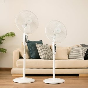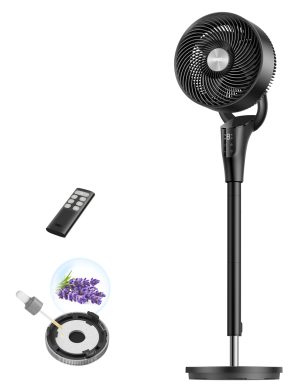 berssen Ventilateur sur Pied Silencieux Moteur DC 25dB Ventilateur de Circulation d’air, Oscillant 3D à 13 Vitesses 12h Minuterie, avec Panneau Tactile et Télécommande, Pour Bureau à Domicile