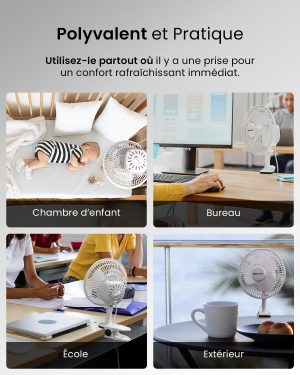 Pro Breeze Mini Ventilateur à Pince – 2 Vitesses, 15 cm – Ventilateur de Table avec Clip, Petit, Portable, Silencieux, Rotation 360° – Pour Maison, Table, Bureau – Blanc