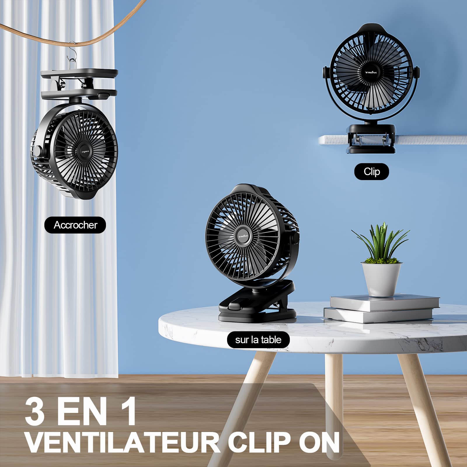 - 🍃【Ventilateur multifonctionnel 3 en 1】- Le ventilateur clip TRILINK peut être utilisé dans des scénarios polyvalents, tels que la fixation sur le bord d’un bureau, des poutres, une poussette pour bébé, le cadre d’un tapis roulant, voire une table de nuit, accroché au mur de votre cuisine, chambre d’étudiant, salle de bain, ou posé sur votre bureau au bureau ou dans la chambre.
