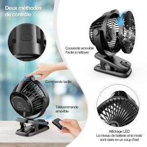 - 🍃【Télécommande et affichage LED】- Une télécommande incluse vous permet d’opérer le petit ventilateur silencieux à une distance d’environ 3 m, vous évitant ainsi des nuisances lorsque vous allez vous coucher la nuit. Il dispose également d’un affichage LED qui fournit un indicateur visuel de la vitesse de vent actuelle et du niveau de batterie en un coup d’œil.