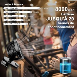 - 🍃【Profitez de la liberté de refroidissement】- Avec une batterie intégrée de 8000mAh, le petit ventilateur USB TRILINK prend en charge jusqu’à 29 heures de fonctionnement (en mode 1) et est pratique à emporter partout où vous en avez besoin. Il est rechargeable via USB par toute source d’alimentation USB telle qu’une banque d’alimentation, un ordinateur portable, un ordinateur de bureau, un adaptateur, un chargeur mural, etc.